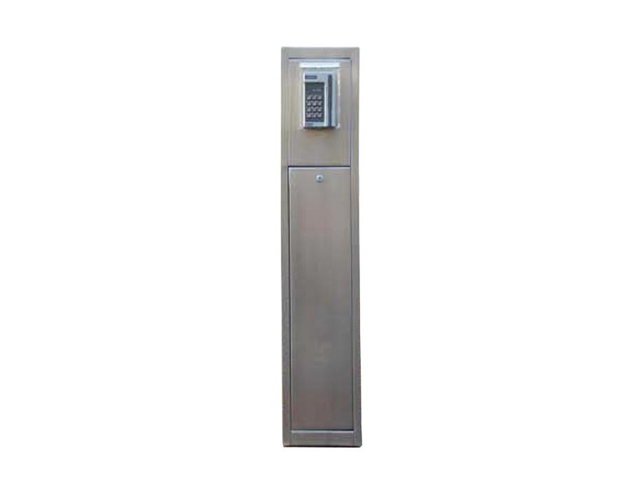Kortlesersøyle H8310, i børstet rustfritt stål. Låsbare dører. Leveres som standard uten braketter og skjerm. Muligheter for levering i pulverlakkert rustfritt stål.