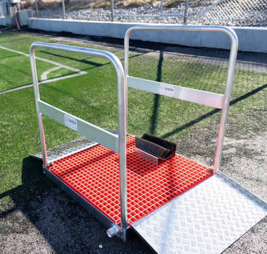 Vi tilbyr bl.a. granulatoppsamlere produsert i vår fabrikk i Norge – kortreist og bærekraftig løsning. Disse produseres enten i aluminium eller i kompositt, alt etter hva man ønsker, og de tilpasses etter behov. I tillegg vil vi ved gjerdemontasje rundt banen, montere plater som festes i underkant av gjerdet og gjør det tett ned mot bakken.