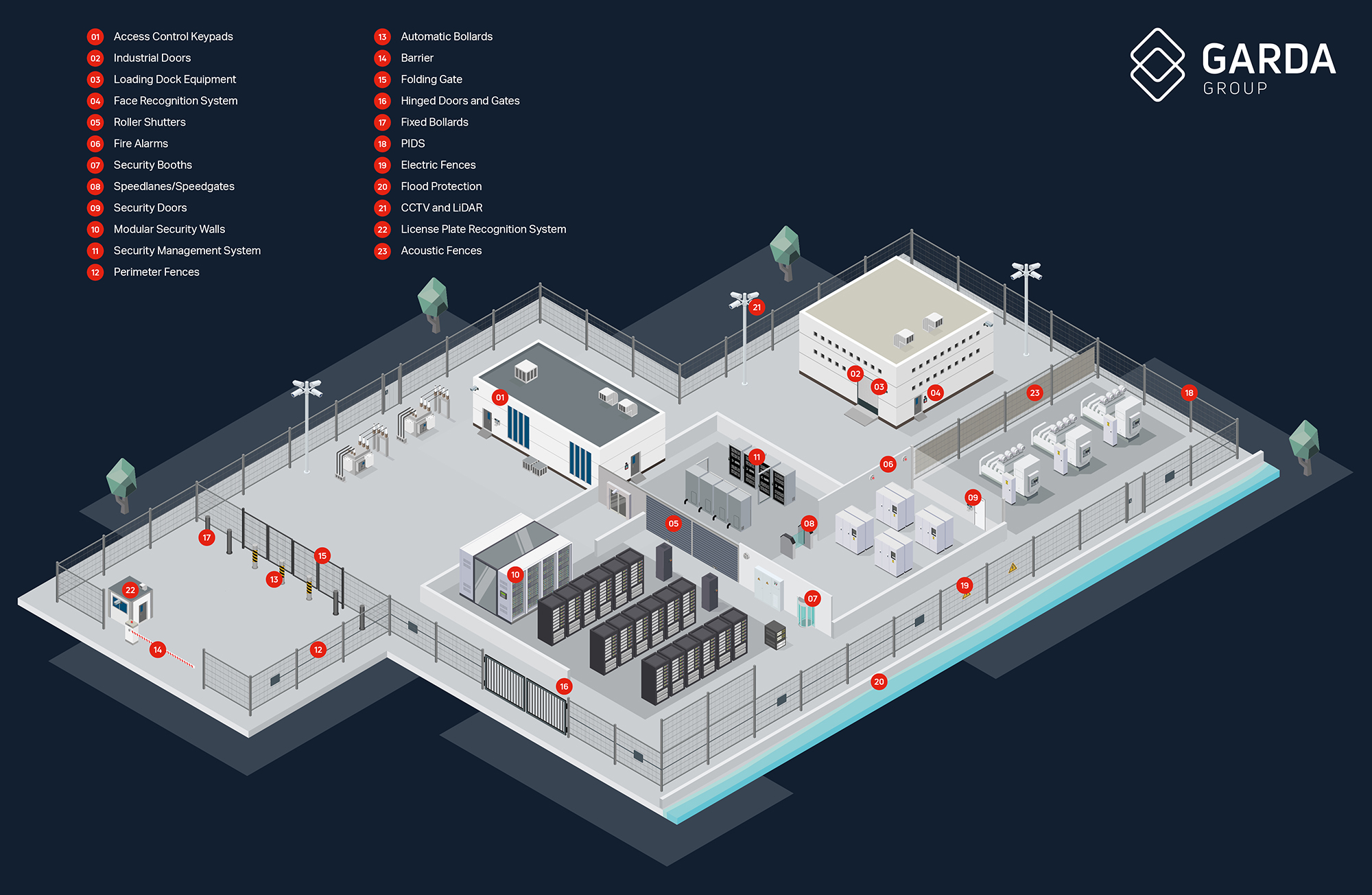 Garda Sikring leverer komplette løsninger for fysisk sikring av datasentre, skreddersydd for å møte strenge krav til sikkerhet, driftssikkerhet og adgangskontroll. Våre tjenester omfatter blant annet robuste perimeterløsninger som gjerder, porter og bommer, avanserte adgangssystemer, overvåkning, samt brann- og innbruddssikring.