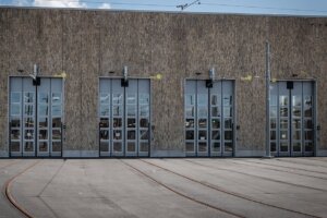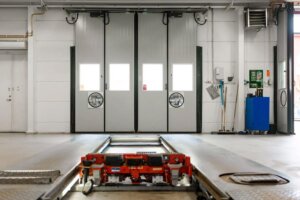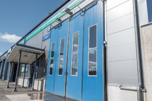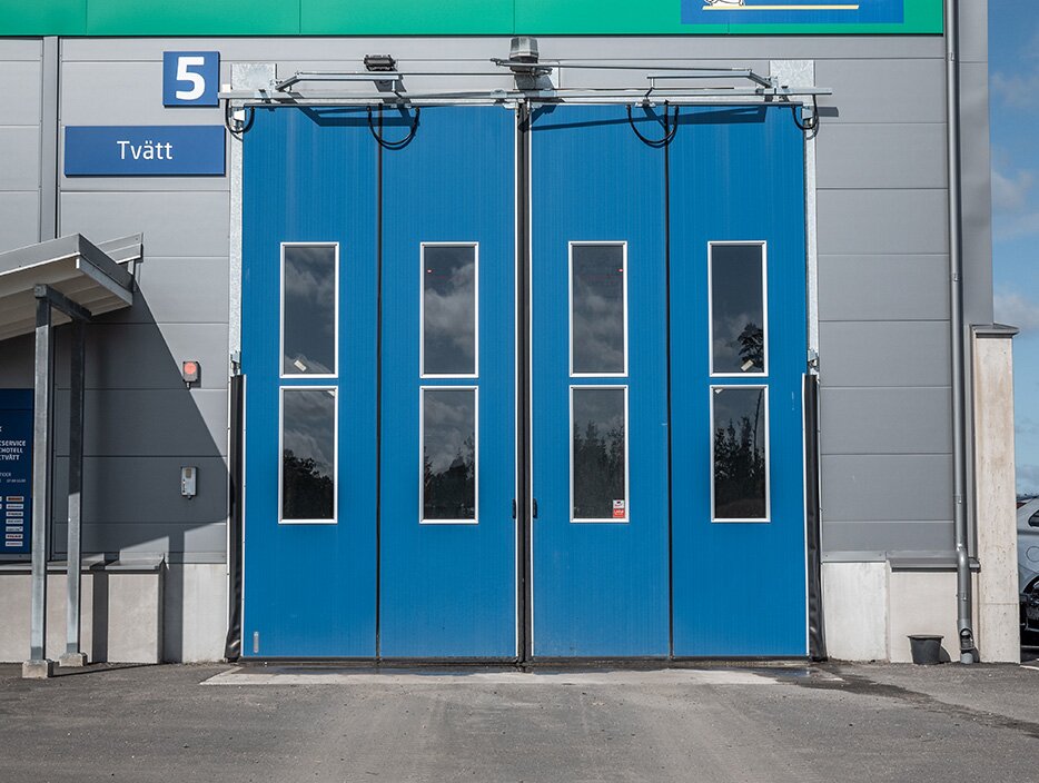 Porten kan leveres med motordrift, effektive sikkerhetsanordninger og kundetilpasset automatikk.