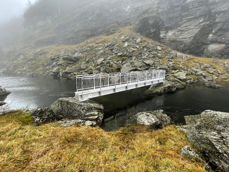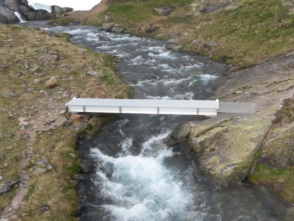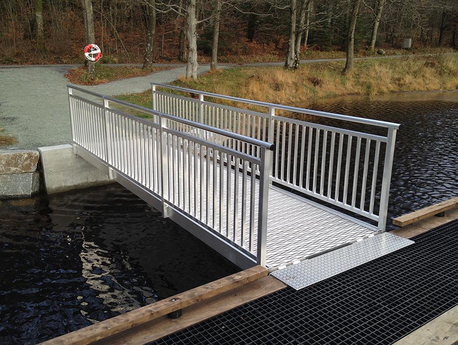 Vi tilbyr gangbaner i aluminium, i den lengden. bredden og utførelsen som våre kunder ønsker. Gangbaner i aluminium er nærmest vedlikeholdsfrie og har mange bruksområder, som f.eks. gangbro over bekker og vann, gangbane ut til brygge og langs vannkanten. Vi har levert og montert ulike varianter til hele landet. Kontakt oss så kan vi sammen finne en løsning som dekker dine ønsker best mulig.