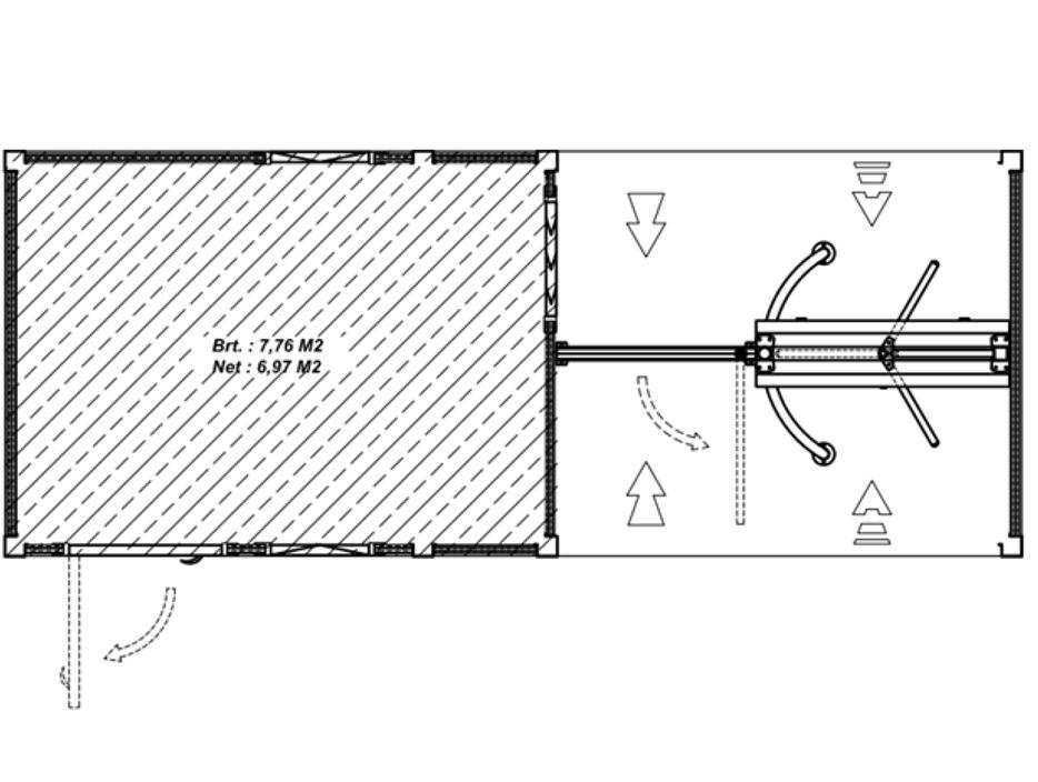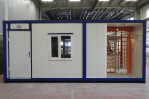 Kombicontainere med rotasjonsgrind som hindrer adgang for uvedkommende, samtidig som de har bruksområder som lager, brakke, spiserom eller andre løsninger. Disse allsidige containerne kommer i mange varianter, som gjør at de kan fylle flere behov. Containeren er utstyrt med elektriske uttak og sikringstavle, slik at den også kan brukes til kontor. Den har flere vinduer og er vinterisolert. Størrelsen varier på de ulike modellene, men alle flyttes på med truck eller kran.