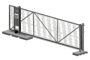 Heras mobil toveis skyvegrind i galvanisert utførelse med flyttbart betongfundament som har spor for gaffeltruck. Hver grind testkjøres og kvalitetsikres før levering. Svært fleksibel og lett å flytte til neste prosjekt.