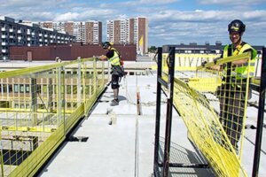 Rekkverksnett med stabil rammekonstruksjon på 2,6 m som benyttes for fallsikring ved dekkekanter. Produktet er en del av Heras Anleggsikring sin pakke for kantsikring,… -