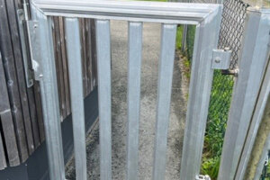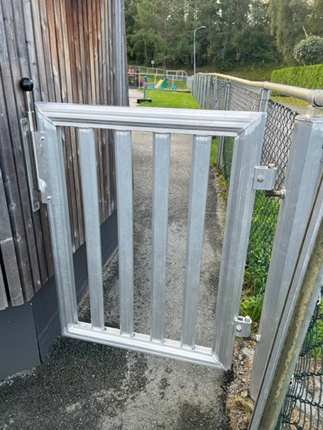 Portene er plastbelagt for å unngå skarpe kanter som kan skade. Standardfarge sort RAL 9005 eller grønn RAL 6005. Maskestørrelse er 40/50 mm. Leveres i ønsket høyde, standardkrav til barnehager er enten 1 eller 1,2 meter. Vi tilbyr også barnehageporter i aluminium.