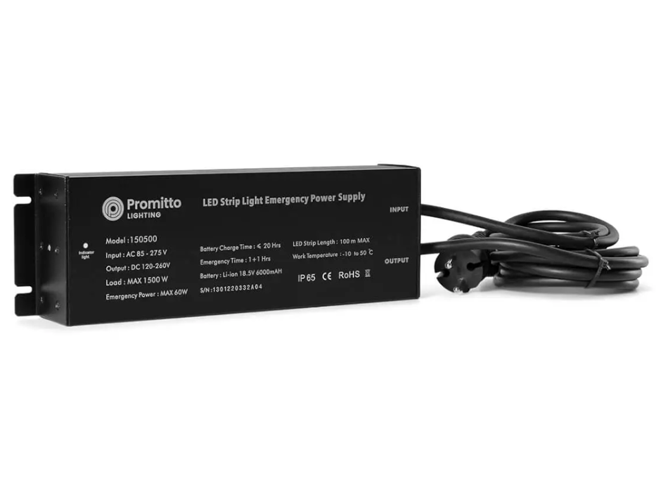 Ved bortfall av strøm vil nødlysmodulen slå over til batteridrift og LED lyset vil lyse med 10% av opprinnelig lysstyrke. Enheten er godkjent for bruk i både tørre og fuktige omgivelser.