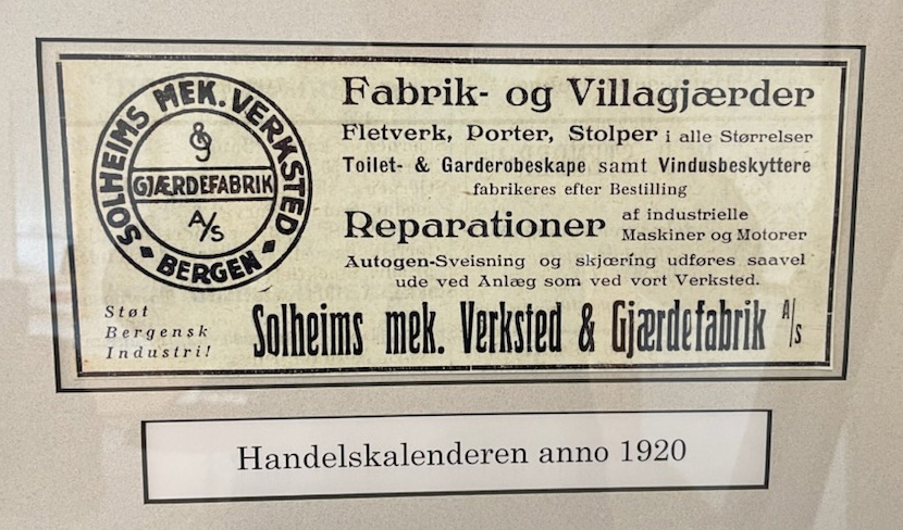 Solheim Mekaniske Verksted og Gjærdefabrik AS ble etablert av familien Solheim. Selskapet etablerte seg i Kanalveien 6 på Minde i Bergen, og forble i de samme lokalene i 102 år. Solheim produserte gjerder, porter og flettverk, samt andre stålprodukter av ulike typer.