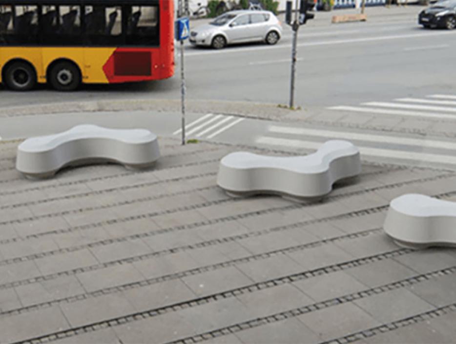 Obstruct betongelement gir en estetisk, fleksibel og og funksjonell beskyttelse i byrom. Laget av organisk betong med 3 sammenhengende øyer. Disse er retningsløse, og oppsatt i formasjoner lager den mindre rom eller stier mellom elementene. Formen og høyden på 55 cm inviterer til opphold. Støtter et levende og innbydende byrom, og kan erstatte dagens betongbarrierer plassert i bygatene som midlertidige fartsreduserende tiltak. Mål på 2300 x 1230 x 550 mm.
