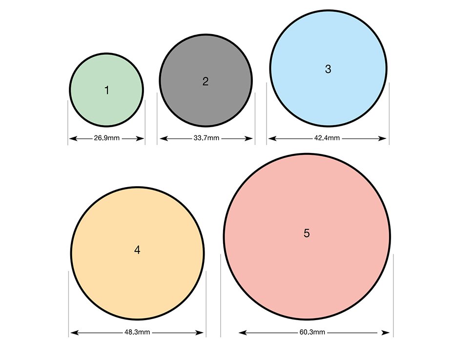 Produktet er tilgjengelig i 5 varianter, for å passe rørdimensjon 1, 2, 3, 4, og 5 (se eget bilde).