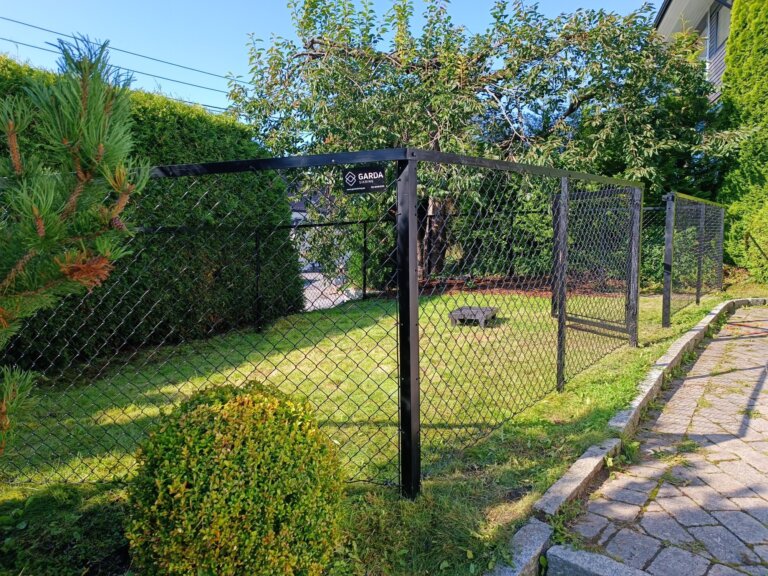 Til privatkunde i Oslo har vi levert og montert flettverksgjerde i 1,2 meter høyde i sort utførelse og med overligger. Gjerdet har en gangport, og totalt ca. 25 meter gjerdelinje ble montert. Ca 10 meter montert på kantstein og resten i plen. Gjerdet ble satt opp med tanke på å fungere som inngjerding for hund, og vi håper dette ble en god løsning for både 2- og 4-beinte.