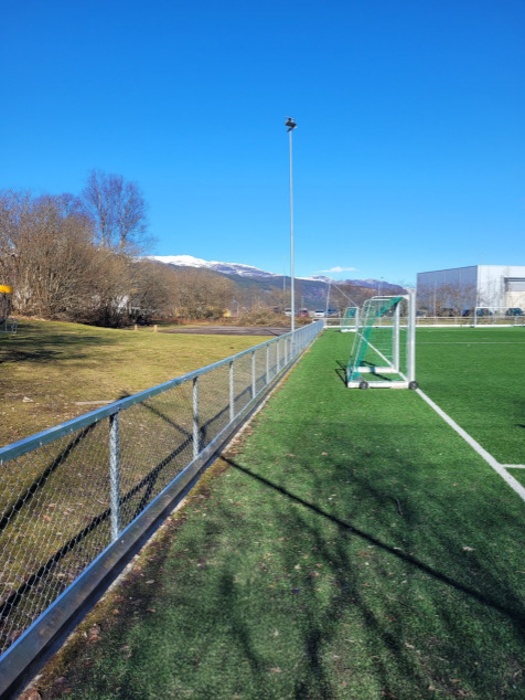 I flotte omgivelser på Sand i Suldal kommune, har vi levert og montert tiltak som hindrer at store mengder miljøfarlig granulat kommer utenfor kunstgressbanen. 200 meter med 1 meter høyt flettverk med overligger er satt opp, med plate i bånd for å tette gjerdet ned mot bakken. Gjerdet har tilhørende nettverksport m/hengelåsbeslag. Det er ved åpningene montert granulatfangere, 3 stk på 1,25×1,25 m og 1 stk på 1×3 m. Vi ønsker alle idrettsglade på Sand mange gode opplevelser på banen!