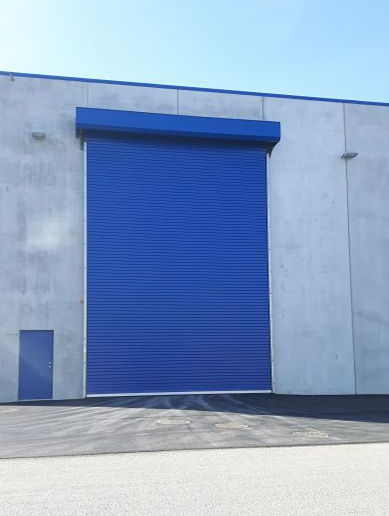 Ved KTM sitt anlegg på Avaldsnes har vi levert bl.a. rulleporter med bredde 6 m og høyde 8 m. Pulverlakkert RAL 5010 både utvendig og innvendig.