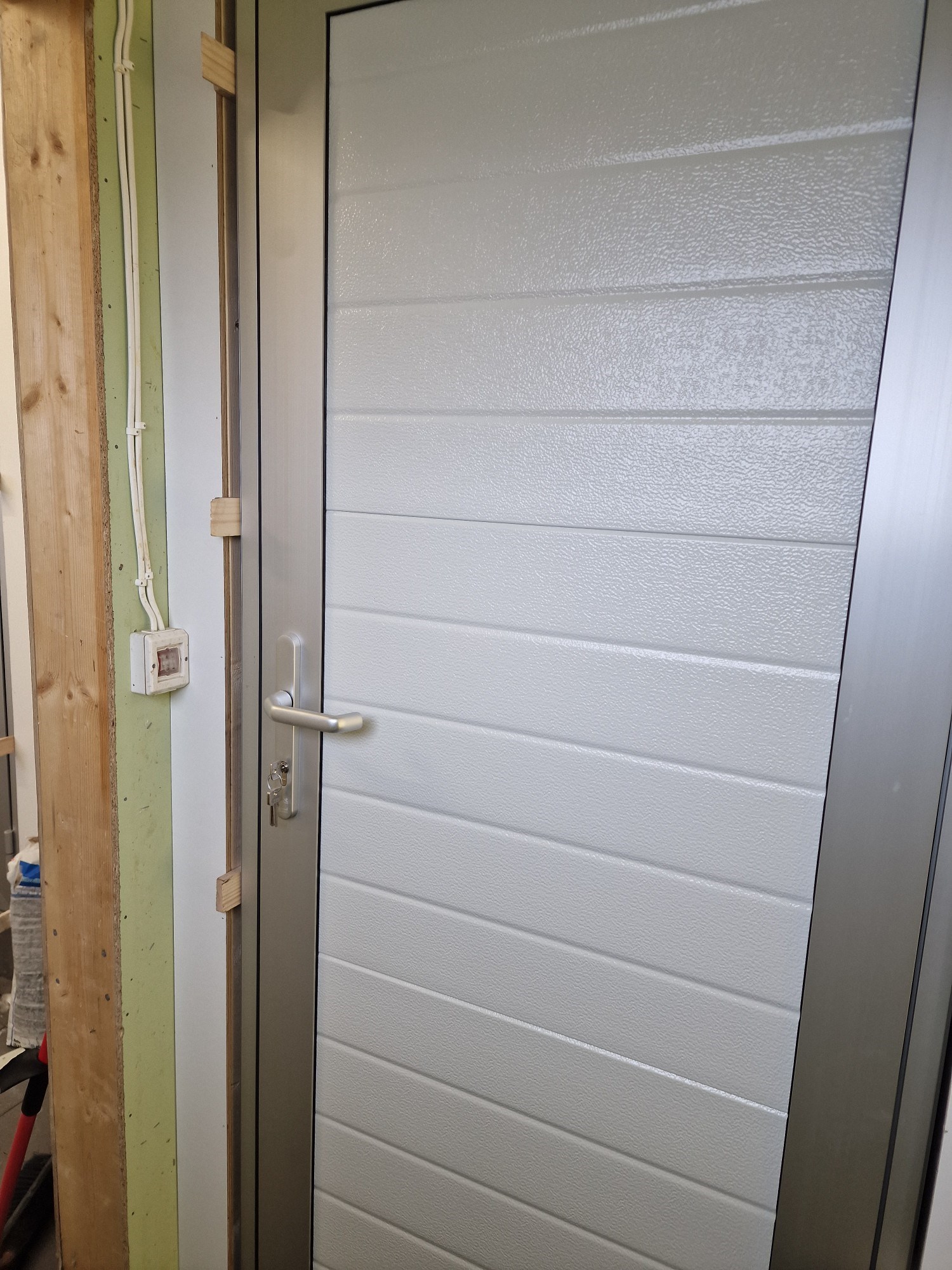 Til Organic Seafood sitt nye bygg i Nordland har vi levert tre høytløftende leddheiseporter av typen S40, samt åtte gangdører med samme utførelse som portseksjonene. Gangdørene er montert inne i bygget, plassert bak de tre portene.