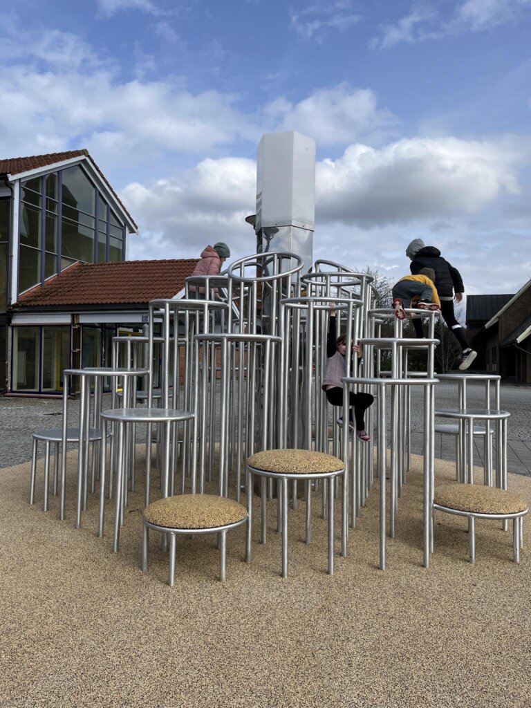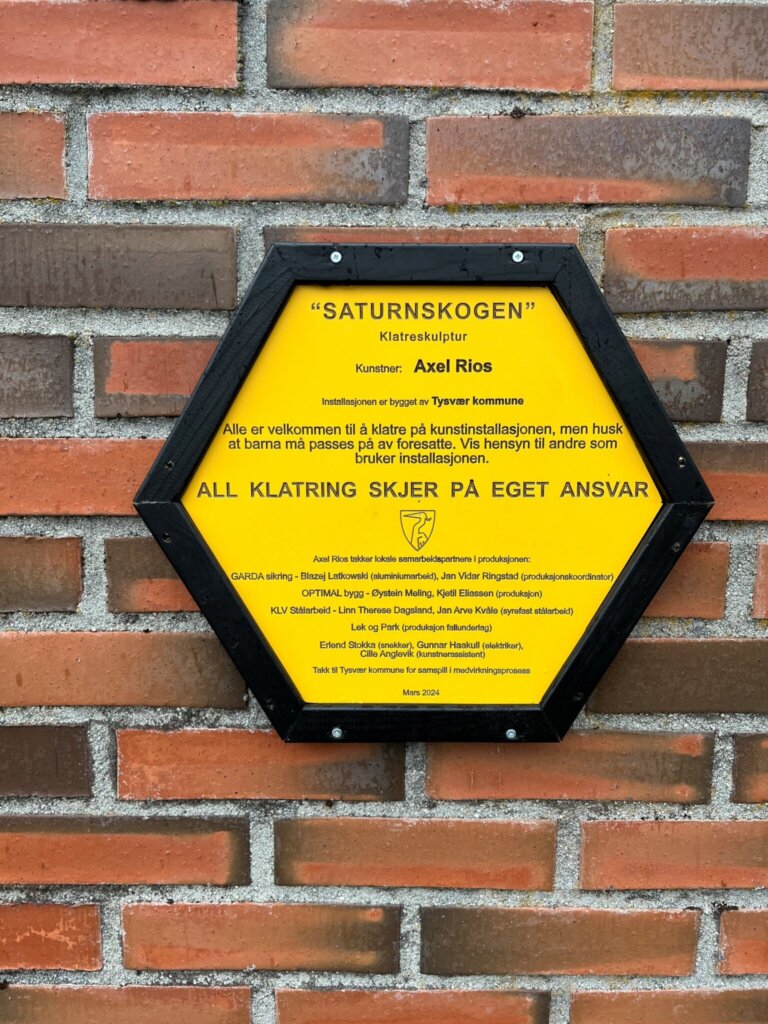 Saturnskogen er en flott klatreskulptur bestilt av Tysvær Kommune og designet av den lokale kunstneren Axel Rios. Her har vår produksjon av aluminiumsprodukter i Haugesund hatt et tett samarbeid og dialog med kunden/kunstner om utførelsen. Skulpturen består av rør som er valset til ringer, med påsveiste ben som har fotplater dekket av gummibelegg. Noen av ringene på toppen har også en sveist perforert plate slik at vannet skal renne gjennom. Besøkende kan klatre eller stå på fotplatene for å nå toppen. Dette kunstverket er et fint eksempel på samspillet mellom kunst og funksjon i det offentlige rom.