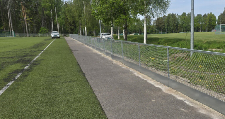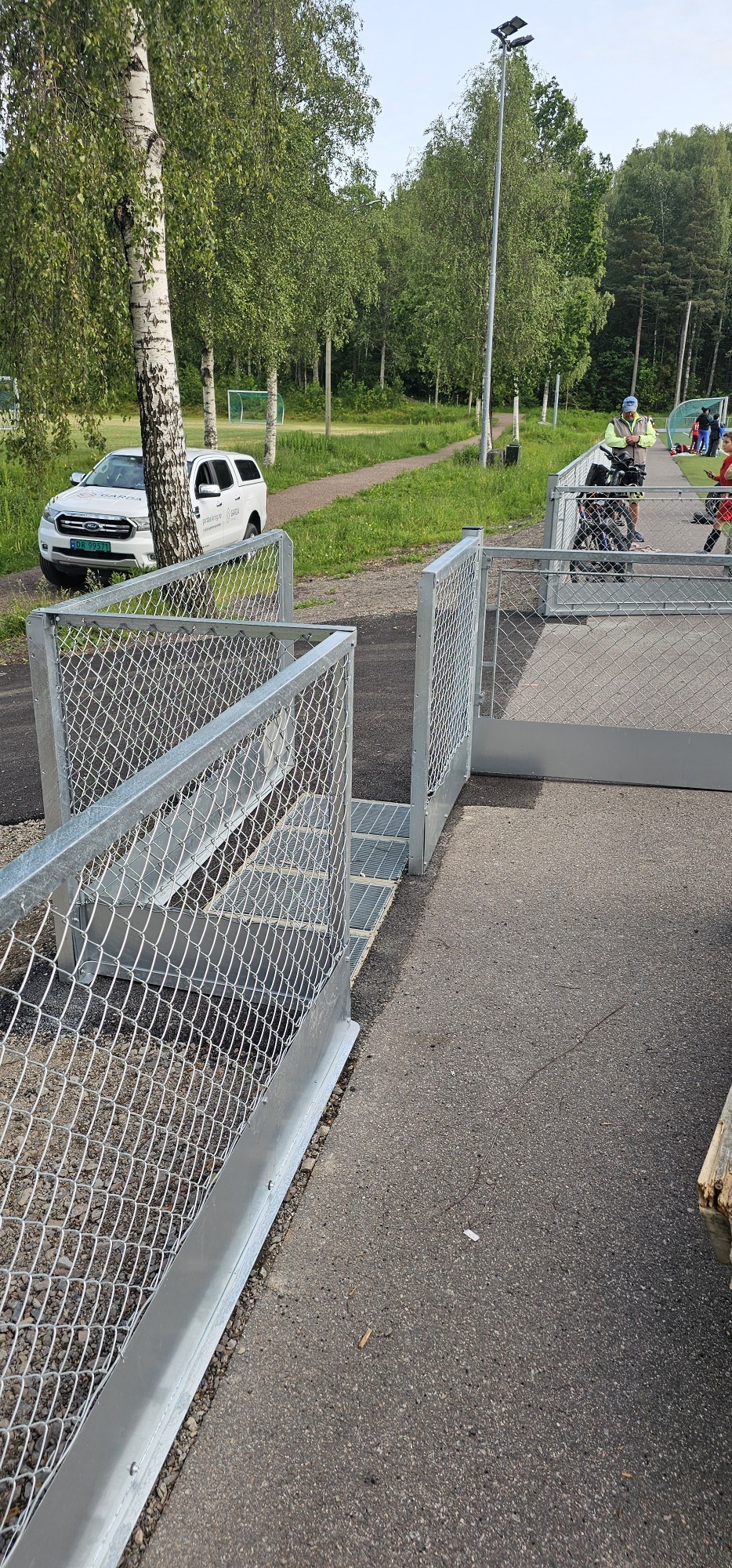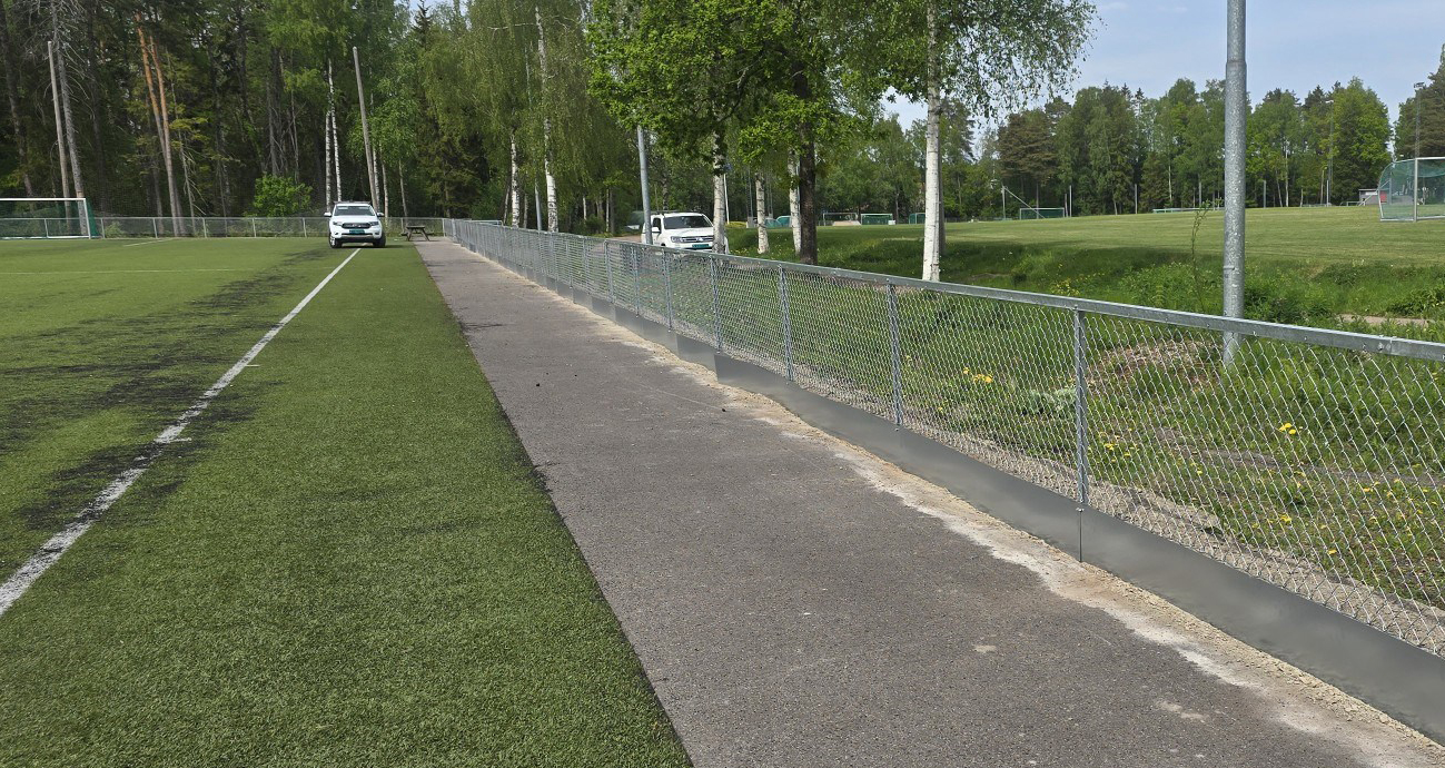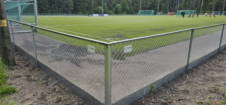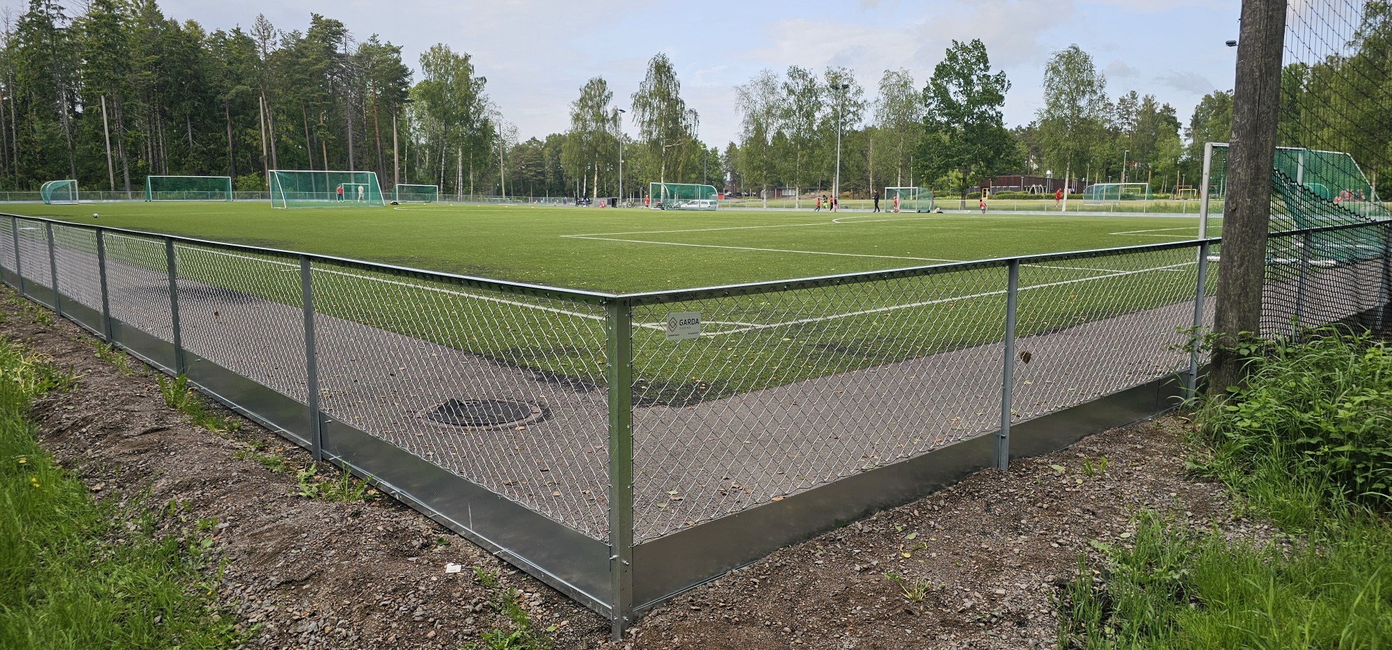Rundt en idrettsplass på Nøtterøy har vi sikret fotballbanen med 350 meter flettverksgjerde, inkludert kant i bunn for å hindre spredning av granulat utenfor området. Det er benyttet gjerde med overligger for ekstra stabilitet og holdbarhet. I tillegg har vi montert en flettverksport for adkomst til banen, samt levert en manuell bom for å forhindre biltrafikk i området.