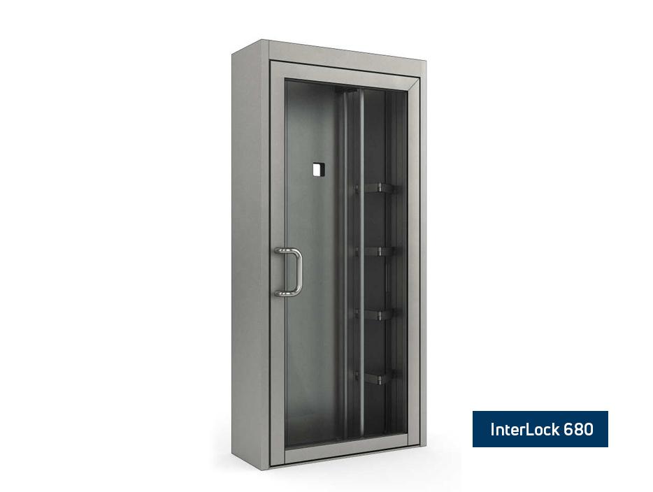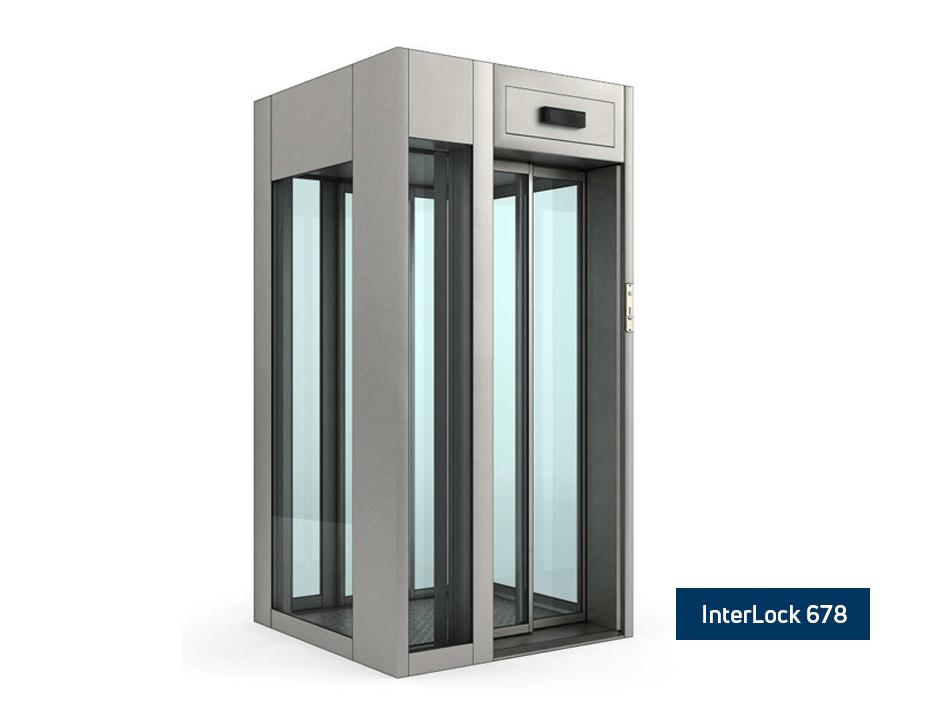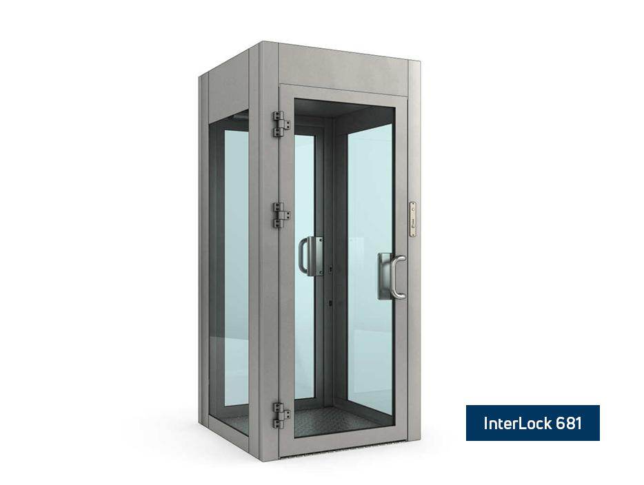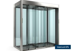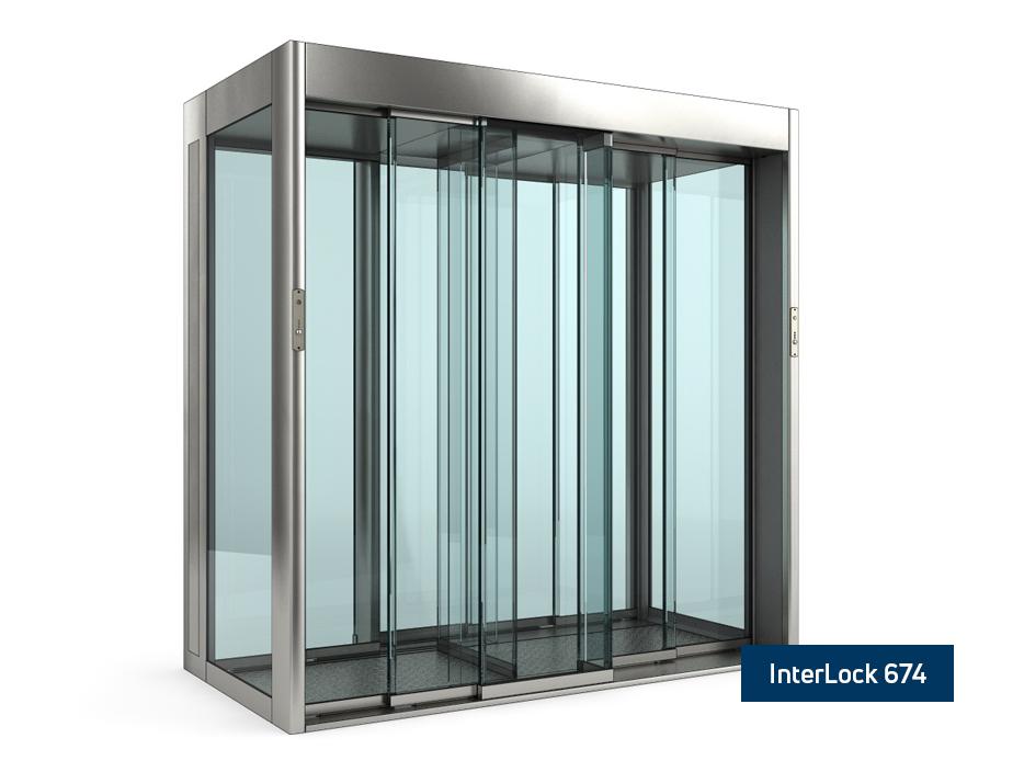InterLock serien kommer i mange størrelser, former og fasonger. InterLock 674 har utvendige mål er 2300 x 2350 x 1200 (dybde) mm, to passasjer på 700 og 900 bredde, begge med høyde på 2135 mm. Kan plasseres i yttervegg. Kan leveres med skudd- og Innbruddsikkret glass (BR3/P6B), selve slusen er bygget som IK09, dvs at den tåler trykket av 5 kg fra 2 meters høyde. Kan leveres med metalldetektor. Kan ta 2x6 personer i minuttet.