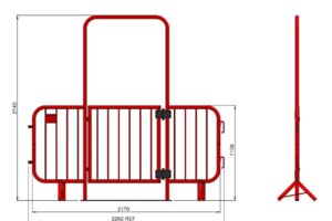 En gjennomgangsportal gjør det enkelt å skape kontrollerte passasjer inn og ut av områder som er avgrenset med sperregjerder. Vi tilbyr en portal i rød utførelse som skaper god synlighet og er ideell for bruk ved f.eks. ulike typer arrangementer. Leveres med selvlukkende dør.