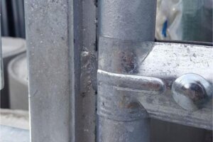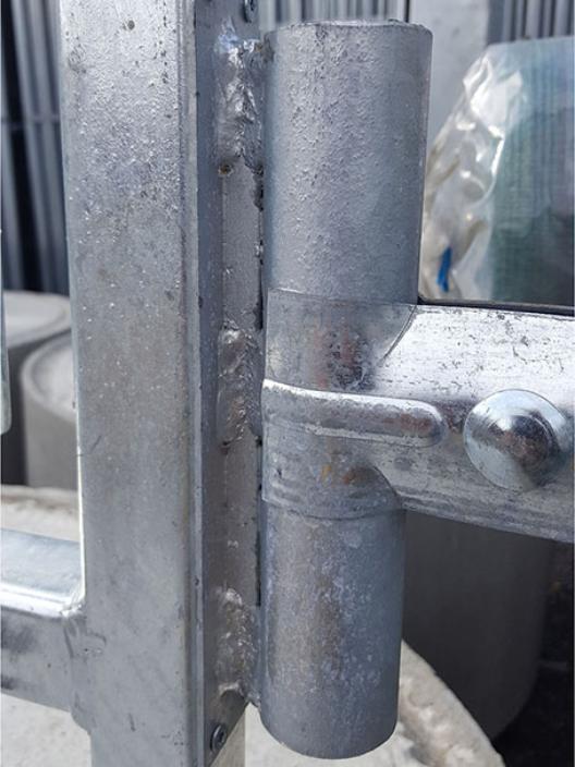 Innfesting for byggegjerder til bruk på port eller vegg. Festet boltes fast til vegg eller port. Vanlig festeklammer benyttes mellom gjerdet og festet.