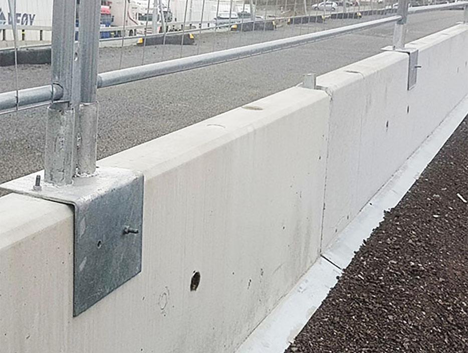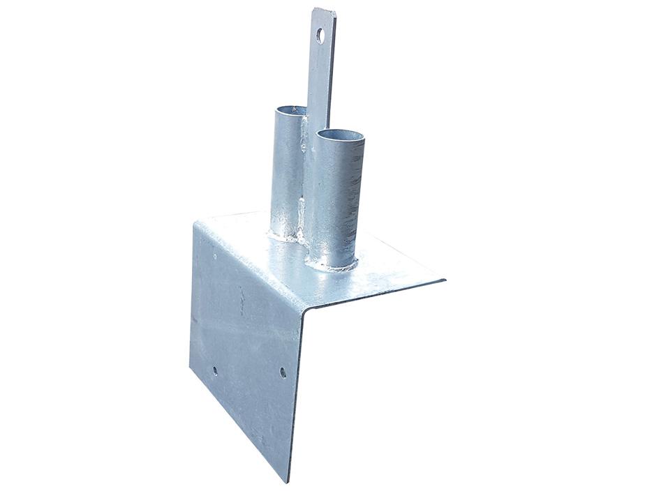 Feste til betongfundament. For bruk sammen med byggegjerder, både tette og vanlige. Betongfestet benyttes på fundament og festes til betongen med bolter, og byggegjerder settes ned i rør-hylsene. I tillegg sikres det med standard festeklammer. Gir solid sikring og høy stabilitet.