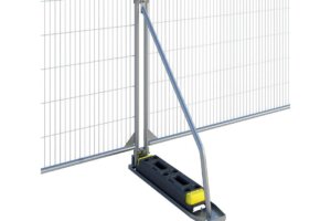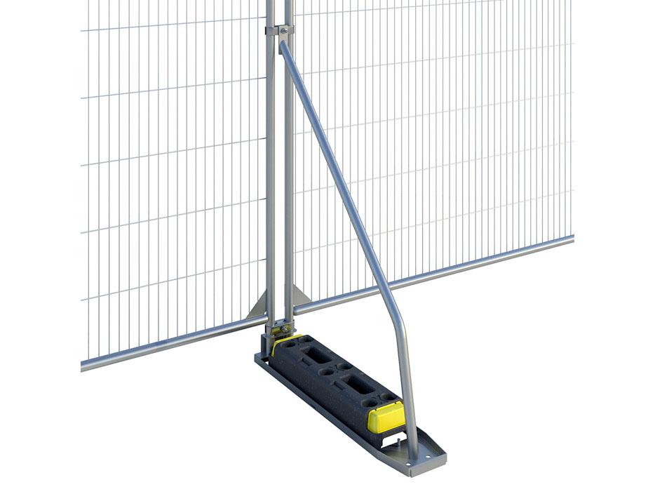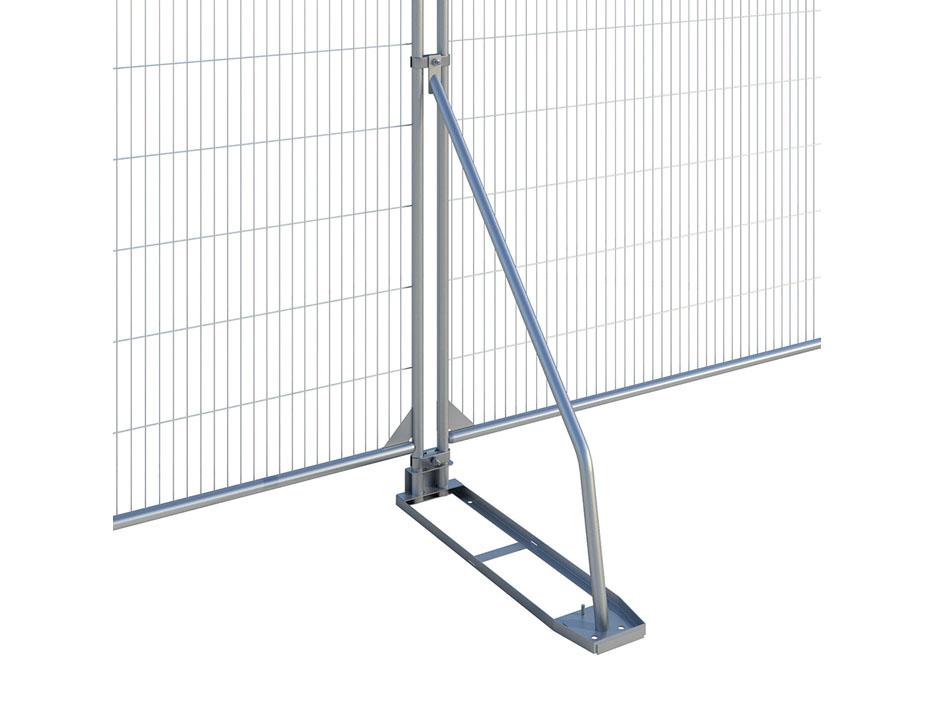 Støttestag er et rimelig og effektivt sikringstiltak for å hindre at gjerder velter og at det oppstår farlige situasjoner. Dette staget har integrert løftesikring, og byggegjerdeføtter eller lignende benyttes til motvekt på platen.